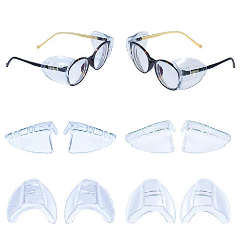 Package Included: 2 Pairs Clear Side Shields fit Small to Medium Eyeglasses with the spectacle frame arm width below 12mm. + 2 Pairs Clear Side Shields fit Medium to Large Eyeglasses with the spectacle frame arm width below 17mm. They can cooperate with most protective Eyeglasses.