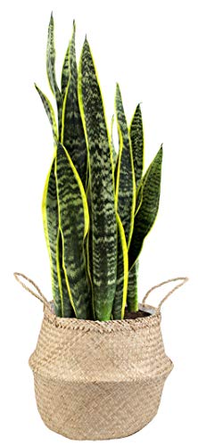 The Snake Plant features stiff, upright, sword-like leaves banded or edged in gray, silver, or gold and adds life to a brightly lit room at home, a lightly shaded porch, or in the office. It grows best near a sunny window. Water when the top couple inches of the soil are dry (about once a week) and be sure all excess water drains away. If the container does not have holes, use approximately 1 cup of water, adjust as needed for your environment. Do not let the Snake Plant sit in water or overly soggy soil. This hardy indoor plant is very adaptable to a wide range of growing conditions. The height at shipping is approximately 28 inches tall, measured from the bottom of the pot to the top of the plant. Ships in a woven seagrass basket that includes a plastic liner to avoid water leakage, seagrass basket is hand-made and produced from natural materials; due to the baskets natural flexibility plant may need to be repositioned insde basket once it's been taken out of the box. The Snake Plant is a slow to moderate grower depending on its environment and is hardy in USDA Zones 9-11. Give it a boost during the warm months of Spring and Summer with a general-purpose fertilizer that is formulated for house plants. Follow the instructions on the fertilizer package for the best use. When the plant out grows the current container, it is time to repot. To repot the Fiddle Leaf Fig, gently remove it from its current container and place it into a slightly larger container. Fill in any empty spaces with new and fresh soil and water thoroughly. Be aware of third-party sellers; other companies try to imitate our quality. There are no other authorized Costa Farms sellers. Look for ships from & sold by to ensure youre getting our premium plants. Plants are living things; each one is slightly different, so the plant you receive may vary from the photo. Our growers hand-pick the healthiest and highest-quality plants. We package our plants for shipment with great care so they'll arrive at your home ready to be displayed. Shipped fresh from our farm to you, Costa Farms is passionate about delivering happy, healthy, beautiful plants. Costa Farms plants are not intended for human or animal consumption. Keep out of reach of children and pets. We're unable to ship this item to: AK, AZ, CA, GU, HI. Send us your feedback at questions@costafarms.
