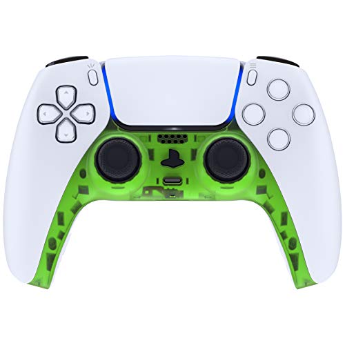 eXtremeRate Clear Green Decorative Trim Shell for DualSense 5 Controller, DIY Replacement Clip Shell for PS5 Controller, Custom Plates Cover for Playstation 5 Controller w/Accent Rings