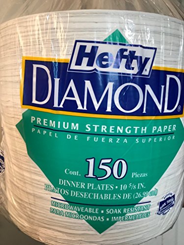 Product Description Hefty Diamond Premium Strength Paper Plates. These dinner-sized (10 5/8 in.) plates are microwaveable and soak resistant. Perfect for parties, picnics, or tailgating. White in color.