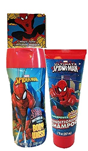 Marvel Ultimate Spiderman 2 in 1 Shampoo Amazing Spider-man Body Wash and 1 Magic Towel 3 Piece Boys Gift Set