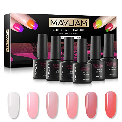 Product Description MAYJAM Jelly Crystal Gel Nail Polish Gift Set - 6PCS 8ml Transparent Pink Nude Gel Polish Colors Soak Off Nail Polish Gel Nail Art Salon DIY at Home