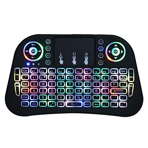 Product Description Mini Wireless Keyboard, Portable 2.4GHz Backlit Handheld Remote Keyboard with Touchpad Suitable for Windows/PC/Raspberry Pi/Smart TV/Android TV Box