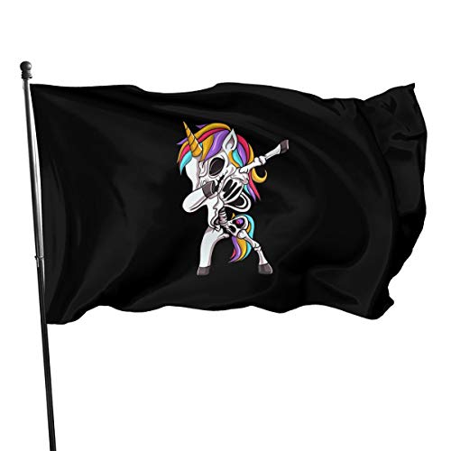 MINIOZE Halloween Dab Dabing Unicorn Skeleton Themed Welcome Party Outdoor Outside Decorations Ornament Picks Home House Garden Yard Decor 3 X 5 Ft Small Flag