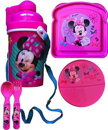 Product Description Minnie Mouse 5 Piece Lunch Kit Includes Minnie Mouse Canteen Popup Lid with Shoulder Strap Edition,minnie Mouse Sandwich Container and Snack Container with Minnie Mouse Flatware Set