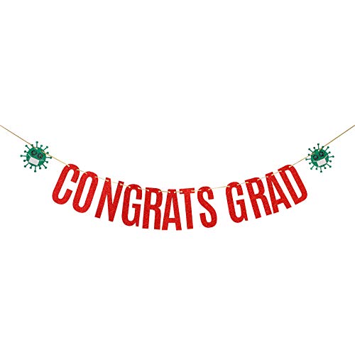 Product Description Red Glitter Congrats Grad Banner 2021 Grad Quarantine Sign Party Banner Congrats Gollege Grad Party Decorations Supplies