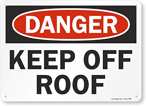 Keep Off Roof - Safety Sign is made from rigid 55 mil polyethylene (HDPE). HDPE plastic is stronger, with better rip-out protection than other plastic signs. Rounded corners and pre-drilled mounting holes. Meets OSHA 29 CFR 1910.145.